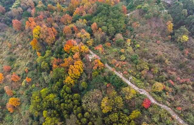 近年来,垫江县把天宝寨森林公园作为城市“后花园”来打造,在公园两侧修建12公里的环山步道,并在沿途设置座椅、观景台等配套设施,成为了市民登山锻炼的好去处。目前,我县城市户外休闲步道已达75公里。图为天宝寨森林公园环山步道,市民正在爬山锻炼身体。