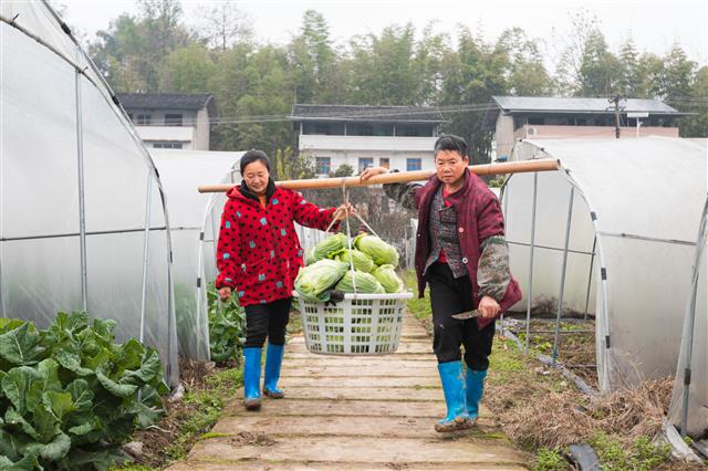 农民运送卷心菜。