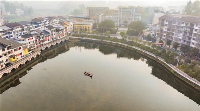 2024年12月31日,在三溪镇长寿湖尾端,清漂工人正在清理湖面垃圾,漂浮的船只点缀在湖面上与湖岸民房相映成景,美不胜收。据了解,三溪镇严格落实河湖长制,结合“五水共治”和“小城镇综合整治”工作,加强对长寿湖的治理与保护,不断提升水环境质量,让湖清岸绿。