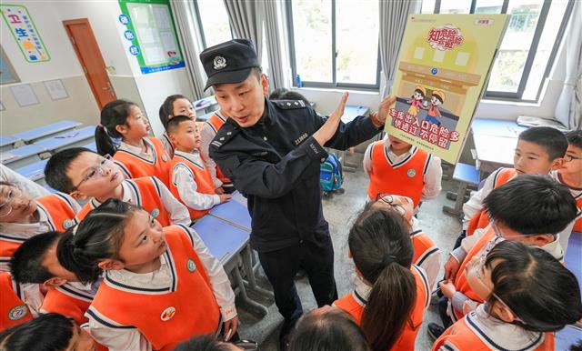 4月15日,县公安局桂阳派出所、桂阳街道联合县红十字会在西湖小学开展安全教育进校园活动。