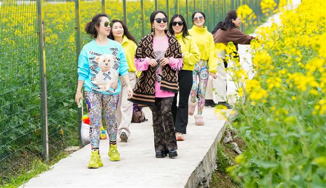 3月12日,沙坪镇连片的油菜花次第绽放,景色宜人,吸引了众多游客前来赏花、拍照。今年,沙坪镇李白村、毕桥村共种植油菜2500余亩,预计本月下旬迎来盛花期,观赏时间可持续到4月。