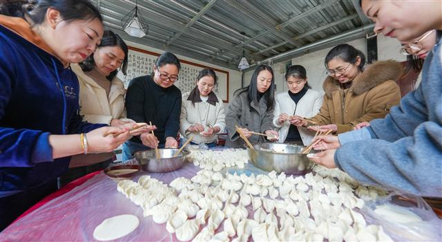 (包饺子。)