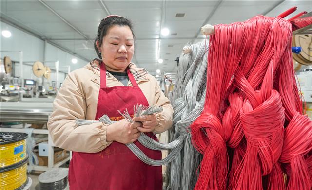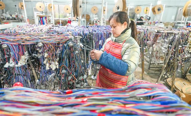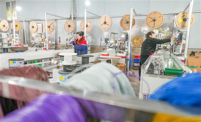 据了解,该企业主要生产冰箱、电视等家电的电源线,产品远销东南亚地区和欧洲国家。目前,车间共有50余名工人,全部都是周边村社的居民。