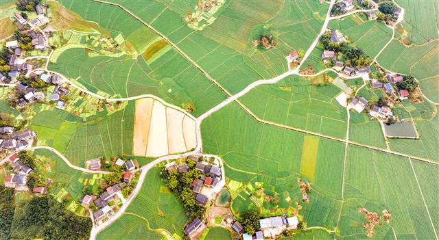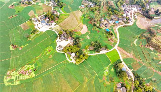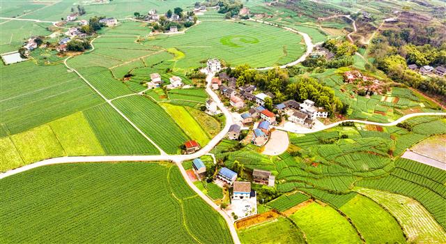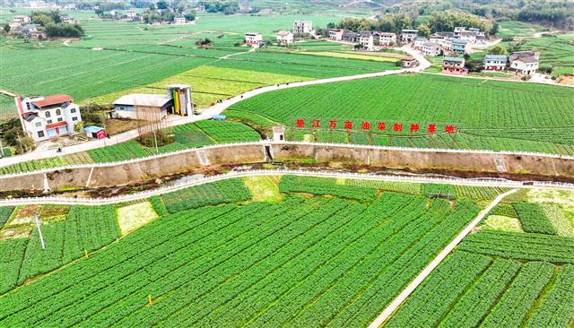2月15日,垫江县沙坪镇李白村,高标准农田里绿油油的制种油菜与错落有致的民房交相辉映,构成一幅产兴村旺的和美乡村画卷。