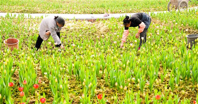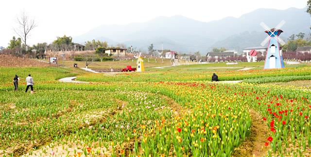2月25日,牡丹樱花世界景区颜色各异的郁金香次第绽放,开启今春赏花季。