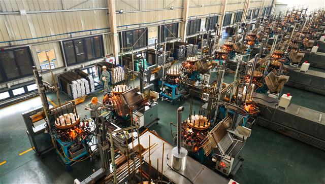 (智能化车间设备快速运转赶制产品。)