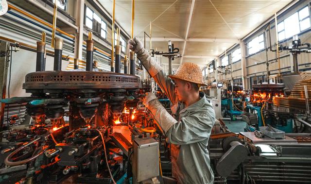 (工人在查看设备运转情况。)