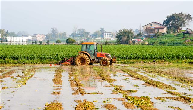 (村民在忙着打田。)