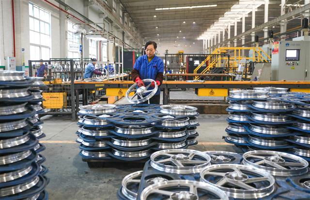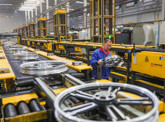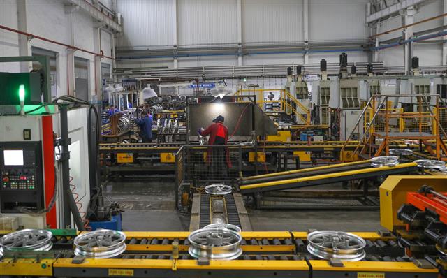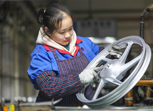 工人赶制轮毂产品。
