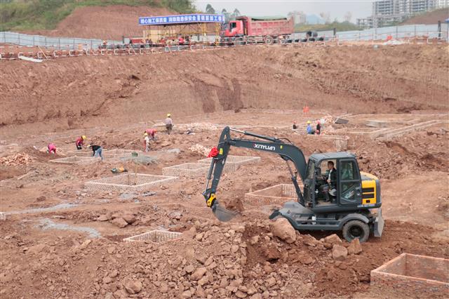 机械声轰鸣,工程车来回穿梭,工人们在各自的作业面上紧张而有序忙碌……11月11日下午,垫江高新区现代农业泵阀产业园项目(一期)检测中心建设现场呈现着如火如荼的施工景象。