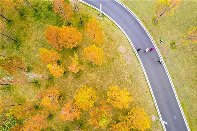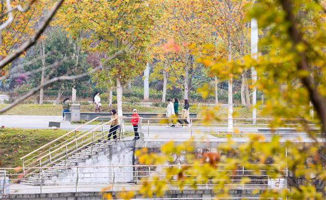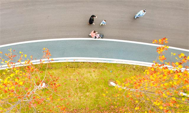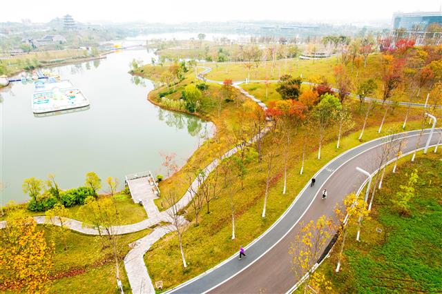 初冬时节,三合湖湿地公园五彩斑斓美不胜收。一片片“披金”彩林、一簇簇枫叶流丹,空中俯瞰,湿地层林尽染,呈现出冬日的生态美景,吸引了众多市民前去观景、游玩。