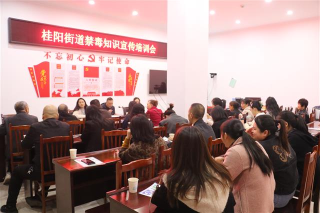 11月11日,桂阳街道在南阳社区开展禁毒知识培训会,进一步延伸禁毒宣传覆盖面,提高辖区居民对毒品的认识,增强居民的识毒、防毒、拒毒能力,营造全民参与禁毒的良好社会氛围。