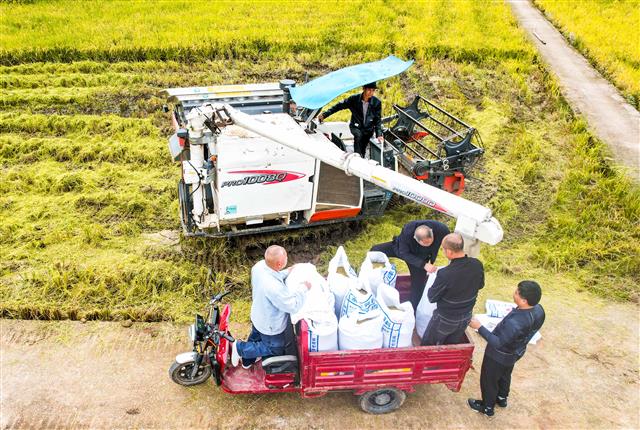(装车转运再生稻。)