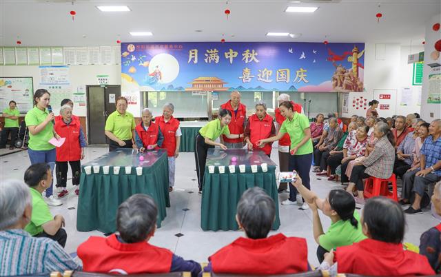 近日,桂阳街道组织辖区养老院共同欢度中秋节。活动通过赛舞蹈、脑筋急转弯、滚动乒乓球、拍数字、玩转领礼品等趣味活动,营造浓浓的节日氛围,让养老院的老人们度过愉快的节日。