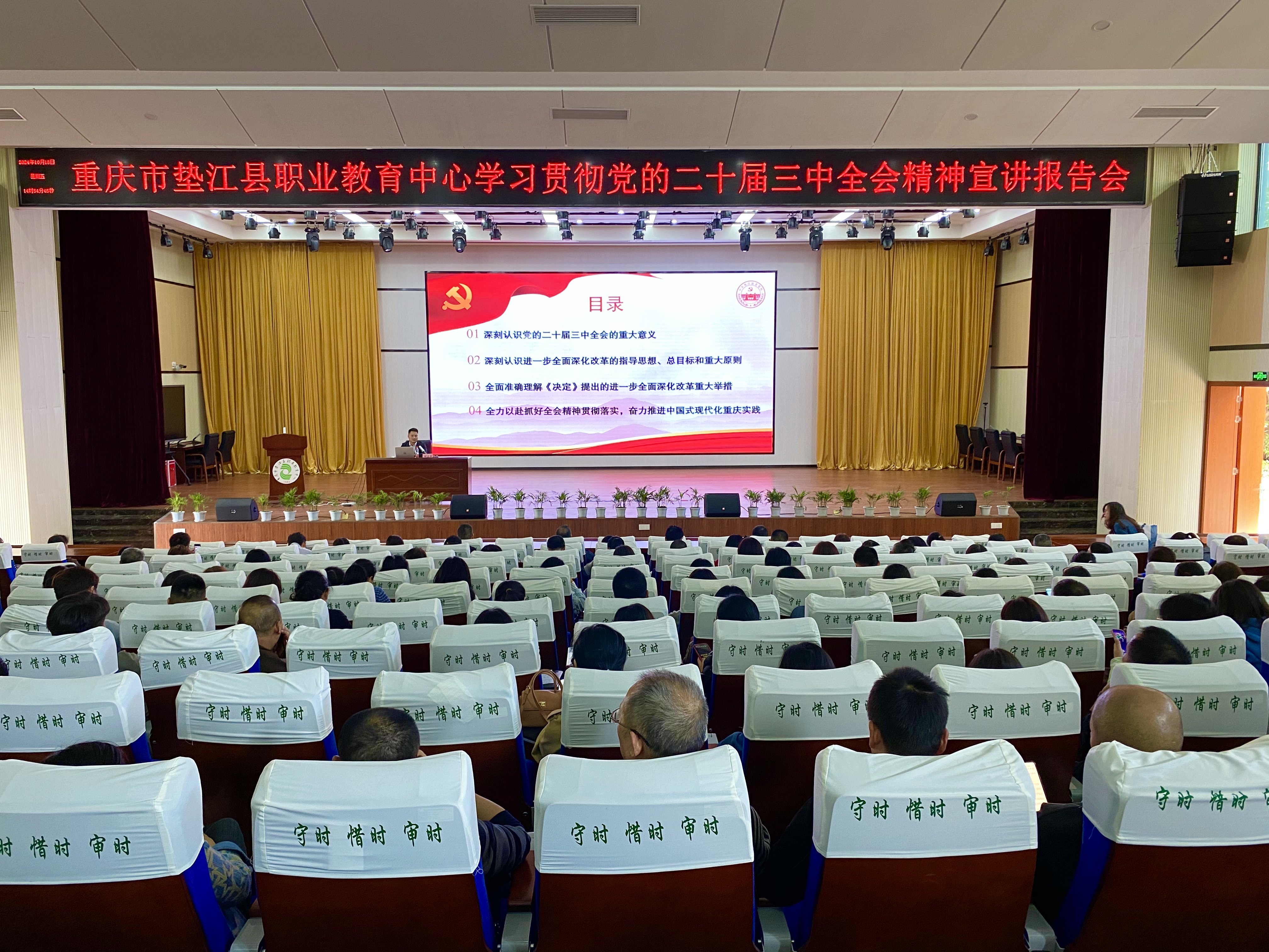 10月18日,县委宣讲团成员、县委党校副校长何卫平在县职教中心开展学习贯彻党的二十届三中全会精神宣讲报告会。