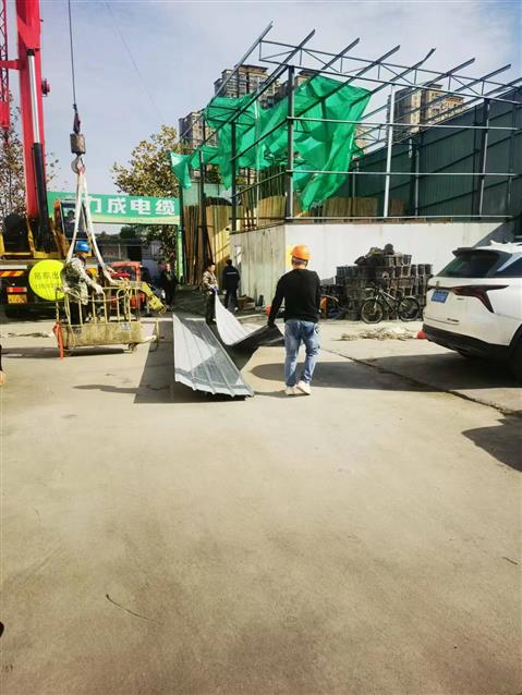 行动当天,工作人员使用吊机,将钢管、彩钢板等进行拆除,并用三轮车运走。执法人员并对周边进行清场,疏散群众,拉起了警戒线。