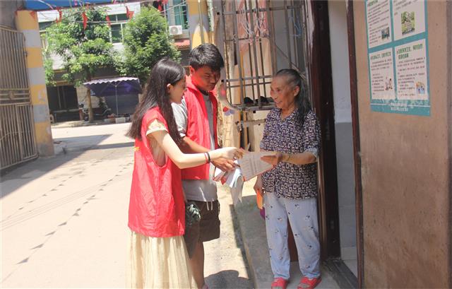 (向居民宣传节约用电知识。 记者 王俊杰 摄)
