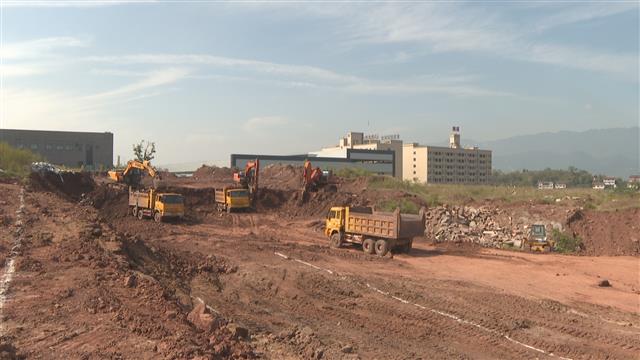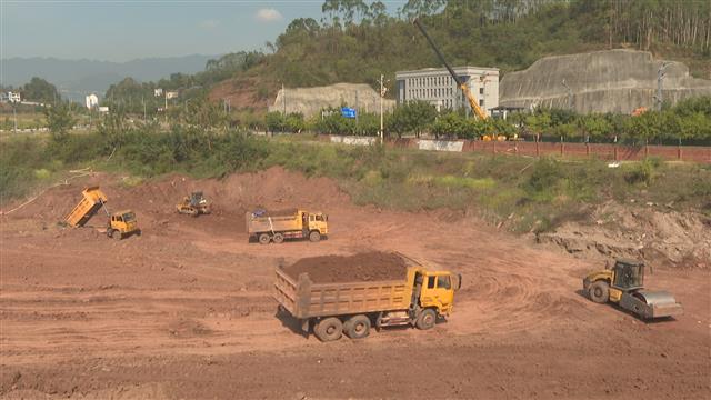 近日,记者在县渝东农特产品电商物流产业园项目建设现场看到,两台大型挖掘机正在进行土石方开挖和平整作业,卡车来回穿梭运送土石方……现场一片热火朝天的施工景象。