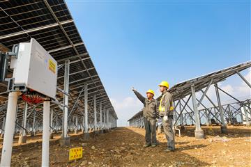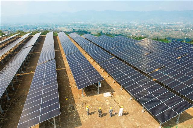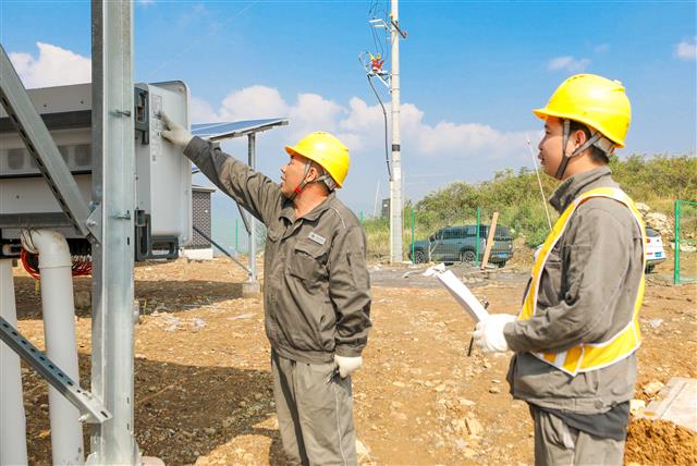 10月9日,明媚的阳光洒落在砚台镇白云村新建成投用的光伏发电站上,一排排光伏电池板错落有致地铺设,绵延伸向远方,庞大的方阵蔚为壮观。