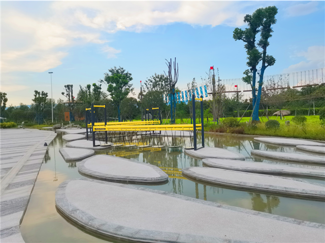 根据功能规划设置,室外建有田径跑道、足球训练场、障碍训练场等运动场所,室内建有餐厅、会议室、健身房、住宿、停车场及高空降落、引导馆、VR体验等十多个项目。其中,备受期待的青少年研学旅行基地,占地约90亩,主要涵盖沙艺馆、陶艺馆、蹦床馆、烘焙馆等多个主题场馆,可为广大青少年和游客提供沉浸式研学趣味。
