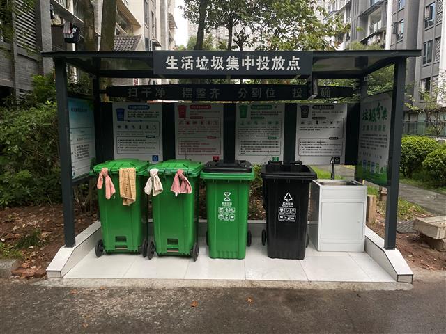 (升级改造后的生活垃圾集中投放点。记者 谭彬 摄)
