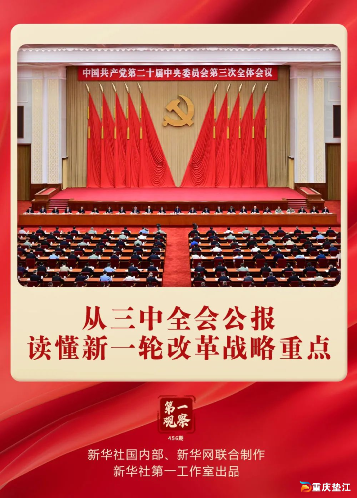 第一观察|从三中全会公报读懂新一轮改革战略重点7月15日至18日,举世瞩目的党的二十届三中全会在北京举行。全会审议通过了《中共中央关于进一步全面深化改革、推进中国式现代化的决定》。从18日新华社受权发布的全