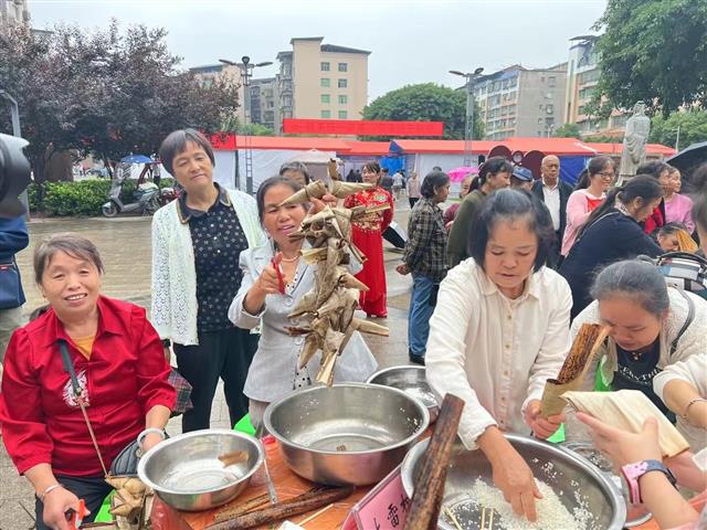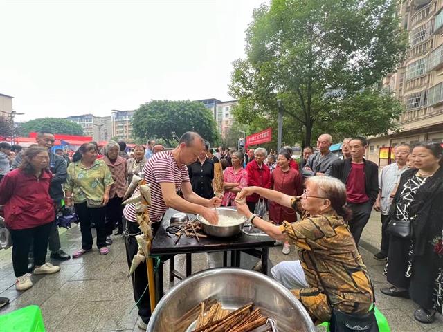 “在‘师傅’们的指导下,经过一遍又一遍的尝试,我慢慢地掌握了包粽子技巧。”初学者湛福燕拿着自己包好的粽子,高兴地说,包粽子活动很有趣,增进了邻里之间感情,营造了浓厚的节日氛围。