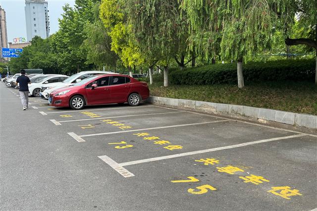 县行政中心2号楼处已施划的共享车位。记者 何维 摄