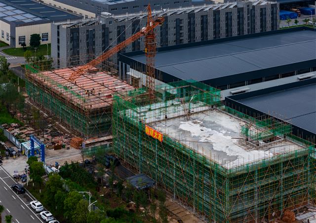 (建设中的明月山网货研发加工营销基地二期。记者 魏瑞 摄)