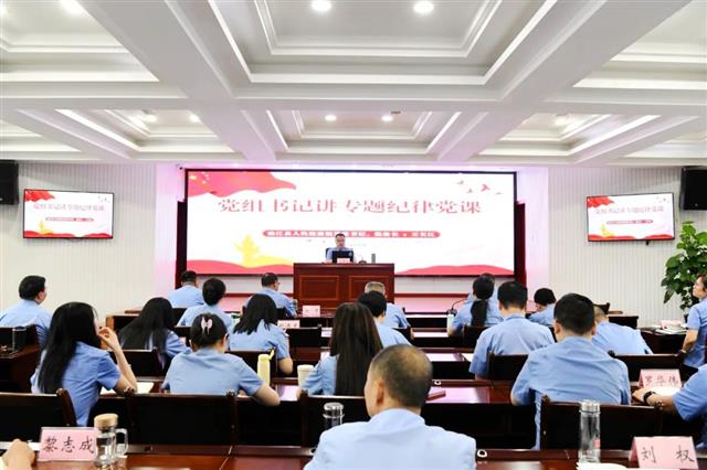 6月28日,县检察院召开党纪学习教育专题纪律党课。