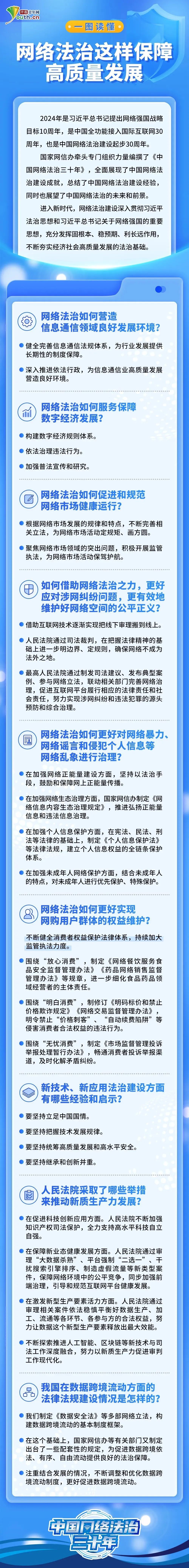 6月18日,国务院新闻办公室举行网络法治保障高质量发展新闻发布会。新闻发布会上,国家网信办副主任王崧,最高人民法院研究室主任、一级高级法官周加海,工业和信息化部产业政策与法规司负责人崔淑田,市场监管总局法规司司长彭新民,国家网信办网络法治局局长李长喜介绍网络法治保障高质量发展有关情况,并答记者问。信息通信领域、数字经济发展、网络市场运行……一张长图带您了解网络法治保障高质量发展情况。