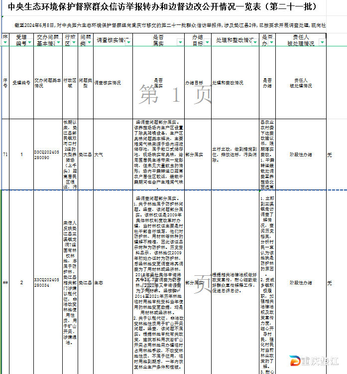 中央生态环境保护督察群众信访举报转办和边督边改公开情况一览表(第二十一批)