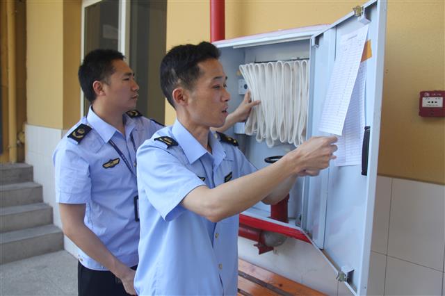 检查消防设施。记者 王俊杰 摄