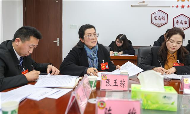 政协委员张瑜就如何提高乡村教育积极发言。记者 龚长浩 摄