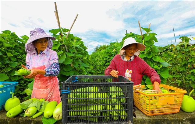 太平镇永远村蔬菜基地工人收获新鲜蔬菜。