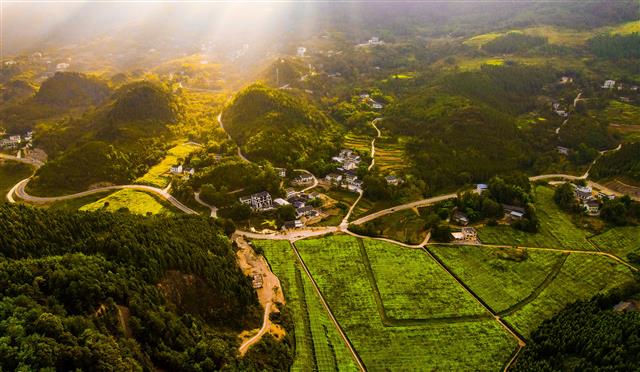 走进太平镇桂花村,一排排依山而建、错落有致的庭院干净整洁、笔直宽阔的明月山天香路延伸向远方,乡村活力焕发。