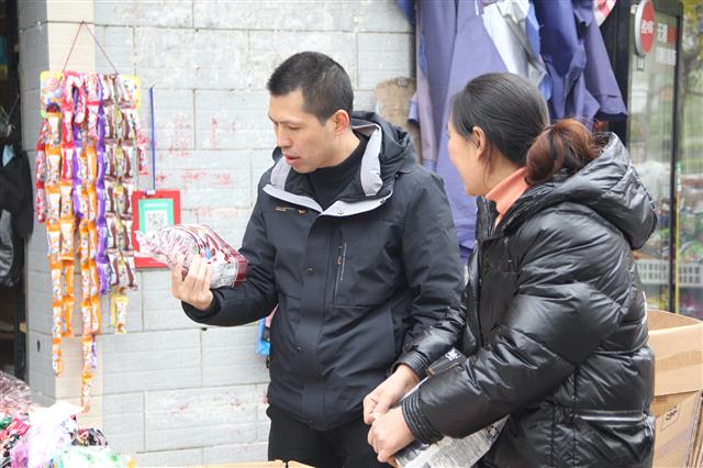工作人员检查小卖部食品安全。记者 何明燕 摄