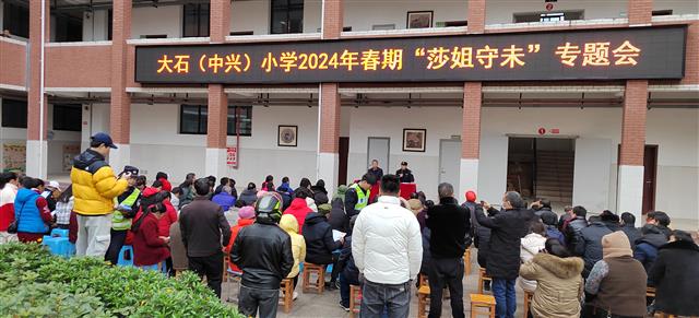 2月23日,大石乡联合大石派出所走进大石小学,开展2024年春期“莎姐守未”专题会,利用“家长日”向学生、家长普及未成年人保护知识。