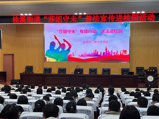 2月22日,桂溪街道联合县公安局、垫江县心向社会工作服务中心走进垫江十中开展“莎姐守未”普法宣传进校园活动。