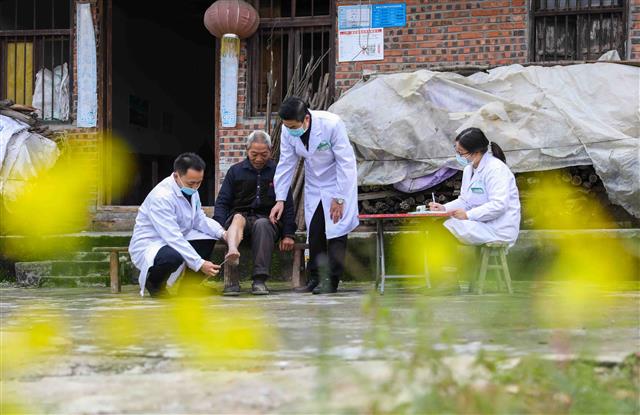 桂阳街道卫生院进村为老人检查身体。记者 龚长浩 摄