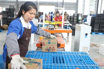 工作人员正在进行产品包装。记者 周迎迎 摄