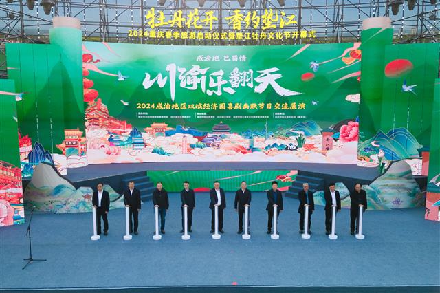 3月22日,“川渝乐翻天”2024成渝地区双城经济圈喜剧幽默节目交流展演活动启动仪式在垫江三合湖湿地公园博览中心举行。