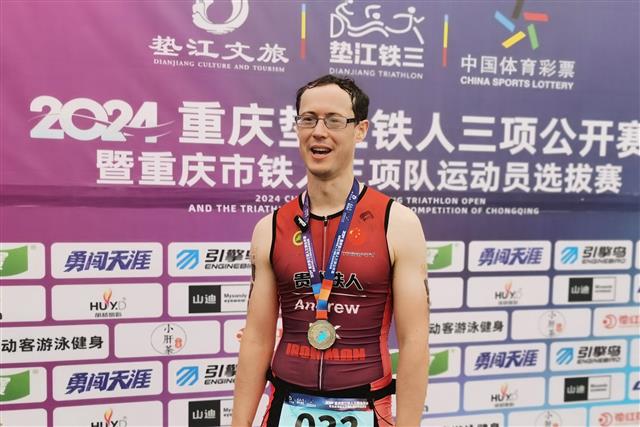来自英国的ANDREW DAVID说,自己从英国来到中国有十多年了,期间一直在贵州当老师。这次来到垫江这座极具魅力的城市参加铁人三项比赛我非常高兴。比赛的公园特别漂亮,环境优美、空气清新,在这样的环境中比赛是一种享受。