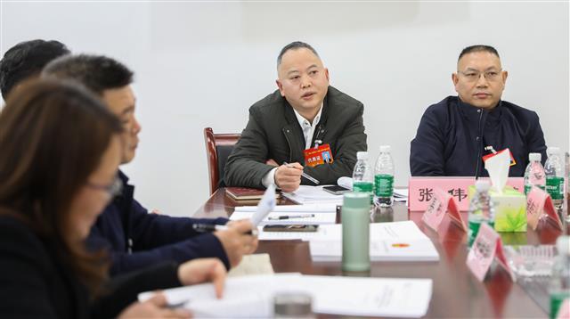 县人大代表张伟就如何助推工业经济高质量发展积极发言。记者 龚长浩 摄