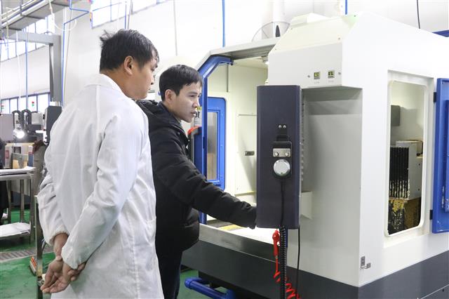 2月23日,记者在蓝博光电(重庆)有限公司(以下简称:蓝博光电)生产车间看到,工人们正在熟练地操作机床,对产品进行精加工。