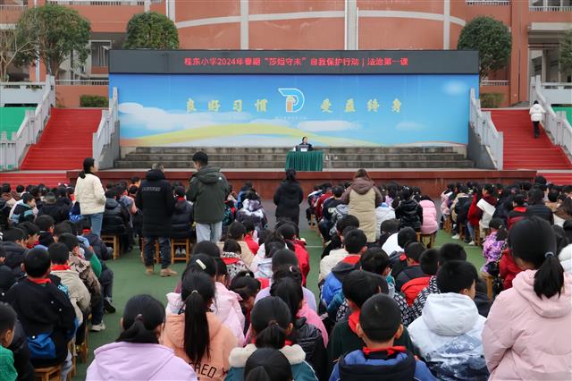 2月28日,桂东小学开展2024年春期开学“法治第一课”普法宣传活动。