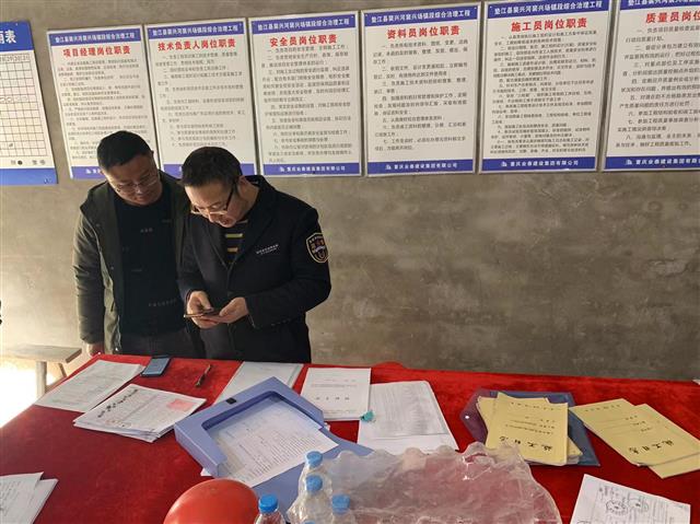 工作人员检查工地“一金三制”相关资源。受访单位提供