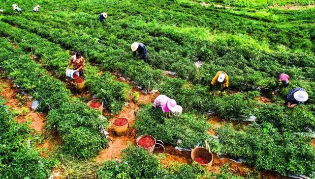 大石乡村民在辣椒基地实现就近就业。记者 龚长浩 摄