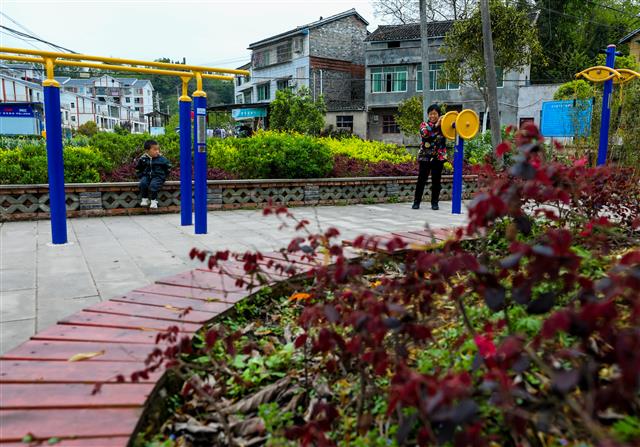 桂溪街道峡口社区市民在家门口休闲锻炼。 记者 龚长浩 摄