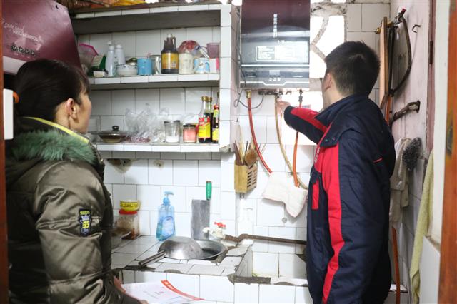 检查用气安全。记者 周迎迎 摄